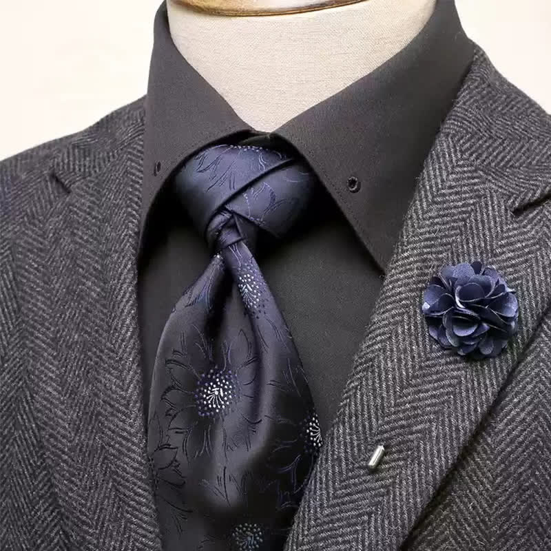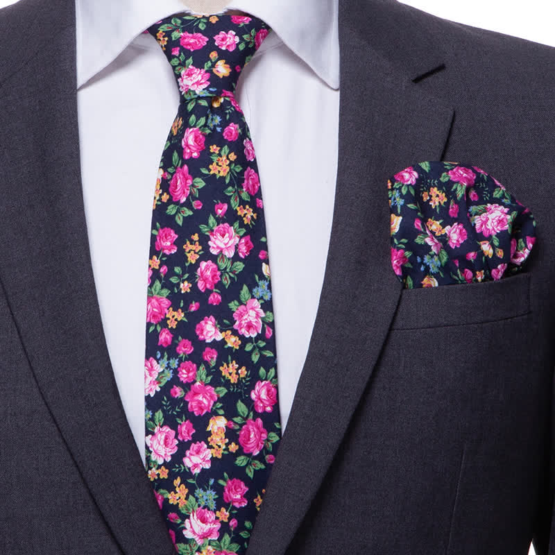 2Pcs Men's Floral Pattern Navy Personality Necktie Set