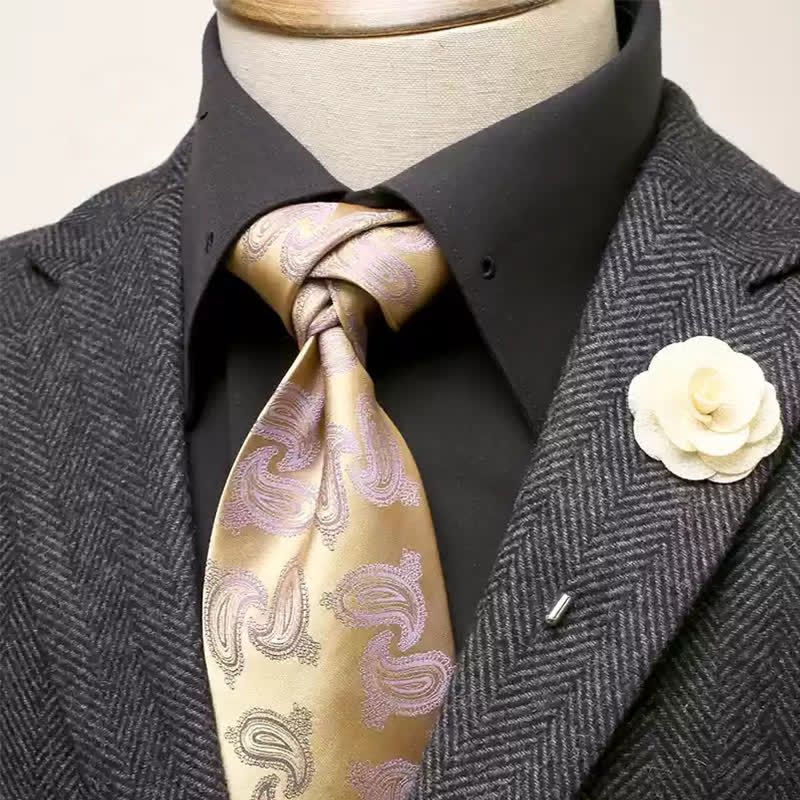 2Pcs Men's Champagne Paisley Motifs Wide Necktie Corsage Set