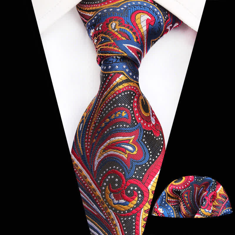 2Pcs Men's Luxury Paisley Pocket Square Necktie Set