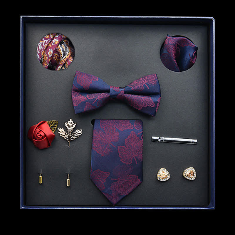 8Pcs Navy&Purple Vintage Leaf Necktie Bow Ties Gift Box
