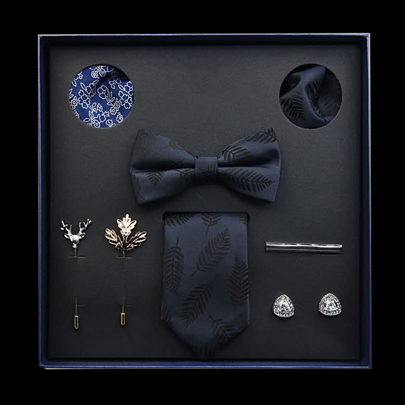8Pcs Navy&Brown Vintage Leaf Necktie Bow Ties Gift Box