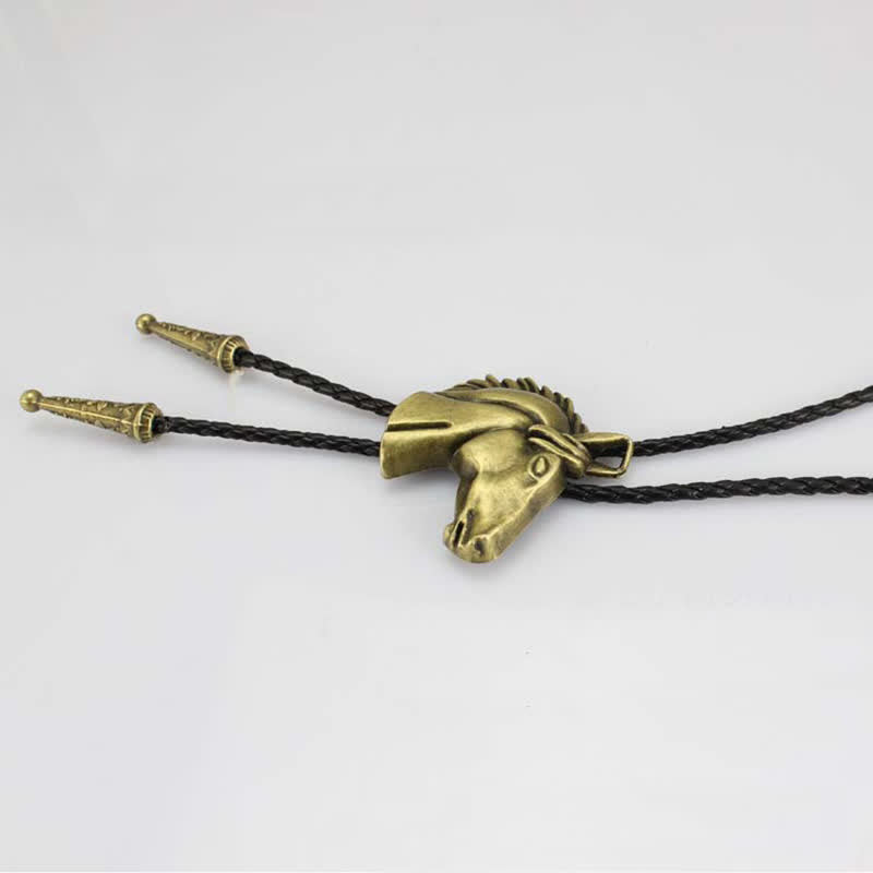 This special horse head bolo tie is great as a trendy western cowboy accessory and can be worn as desired. Worn loose for an informal look or cinched up tight for a more formal western style.