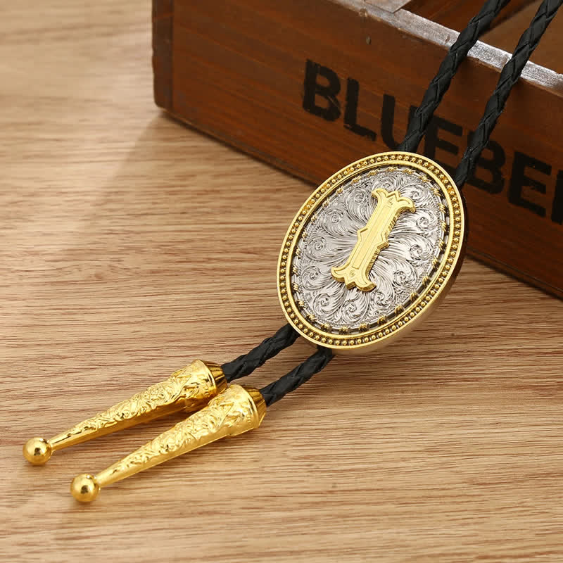 Easy-to-Use & Adjustable Design. The bolo tie features a durable leather or faux leather cord with a simple sliding clasp. It's effortlessly adjustable to fit any neck size comfortably, and the letters slide on and off securely for quick and easy customization.