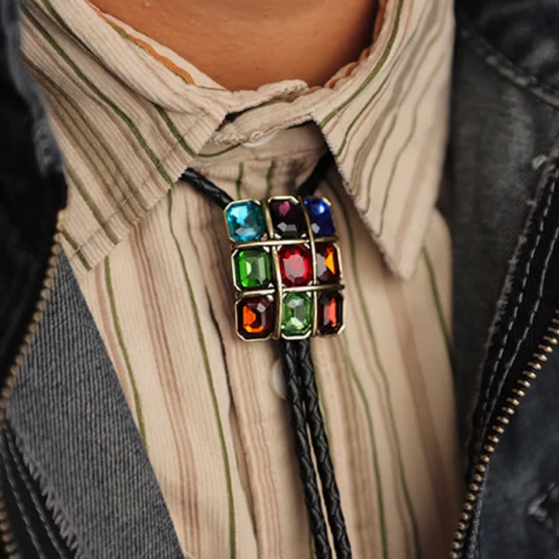 Geometric Mosaic Cube Gemstone Bolo Tie