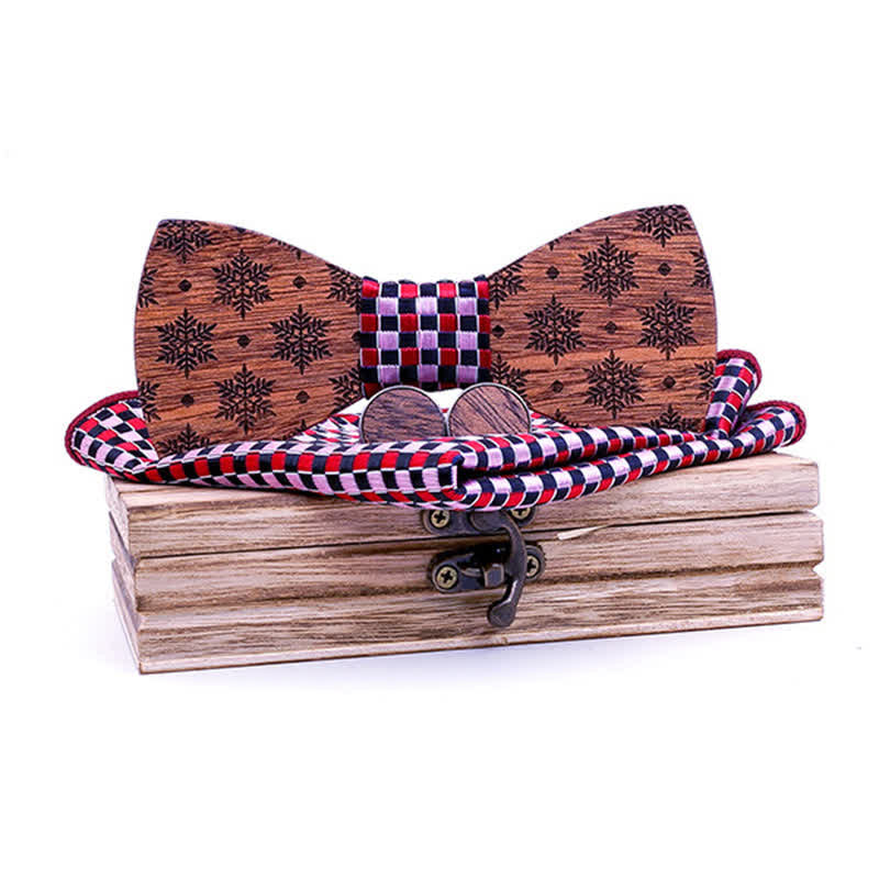 3Pcs Men's Snowflakes Pattern Christmas Wooden Bow Tie Set