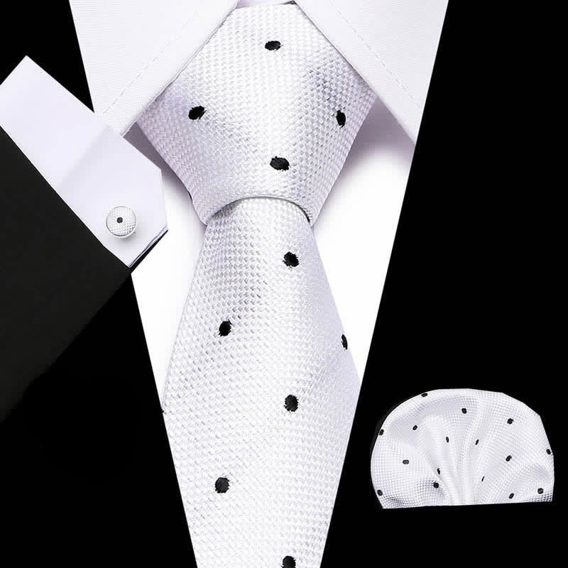 3Pcs Men's White & Black Fine Point Polka Necktie Set