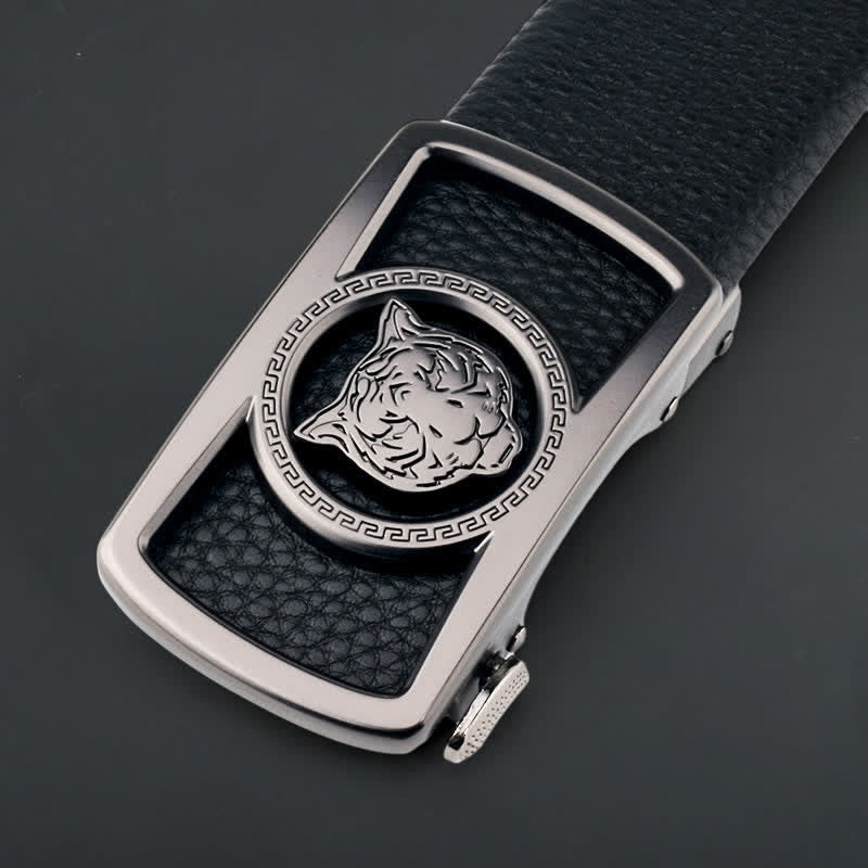 - Just slide the belt into the sliding buckle, pull the leather belt through, then click the buckle to lock automatically.