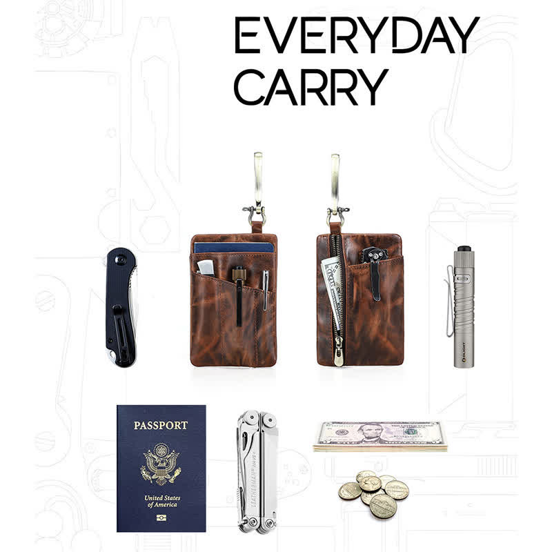 The leather was treated with a rugged and distressed effect, and it gets better with age. All in one EDC sheath, owning an tool leather sheath can hold all your EDC gears, multitools, pens, flashlights, knives, keep them organized, hold them in place, and not lose any parts. It's suitable for outdoor activities.