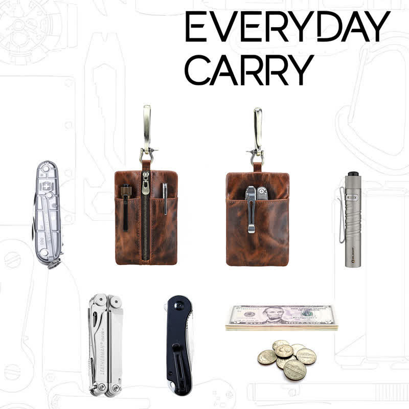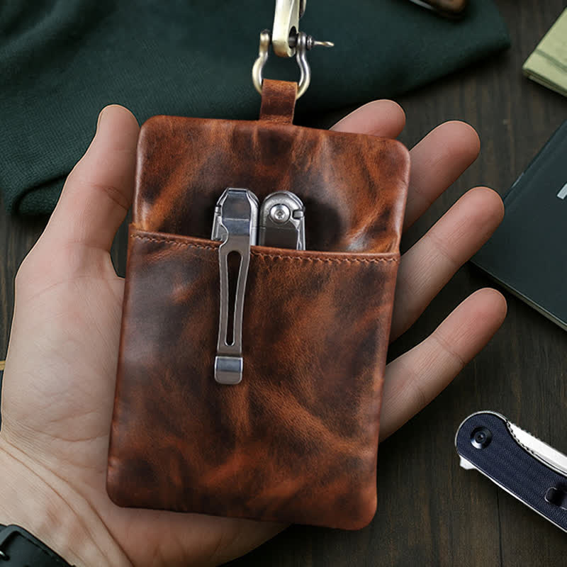 The leather was treated with a rugged and distressed effect, and it gets better with age. All in one EDC sheath, owning an tool leather sheath can hold all your EDC gears, multitools, pens, flashlights, knives, keep them organized, hold them in place, and not lose any parts. It's suitable for outdoor activities.