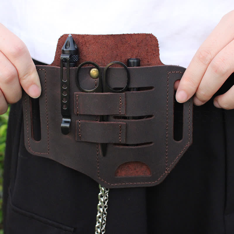 Multifunctional EDC Tools Organizer Leather Belt Bag