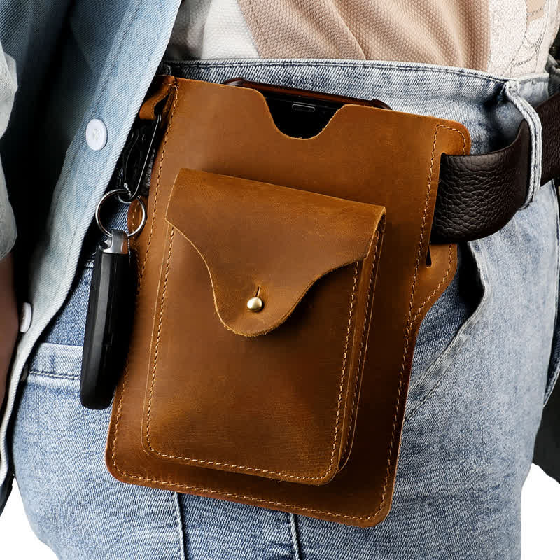 Outdoor Phone Pocket Tactical Sheath Leather Belt Bag