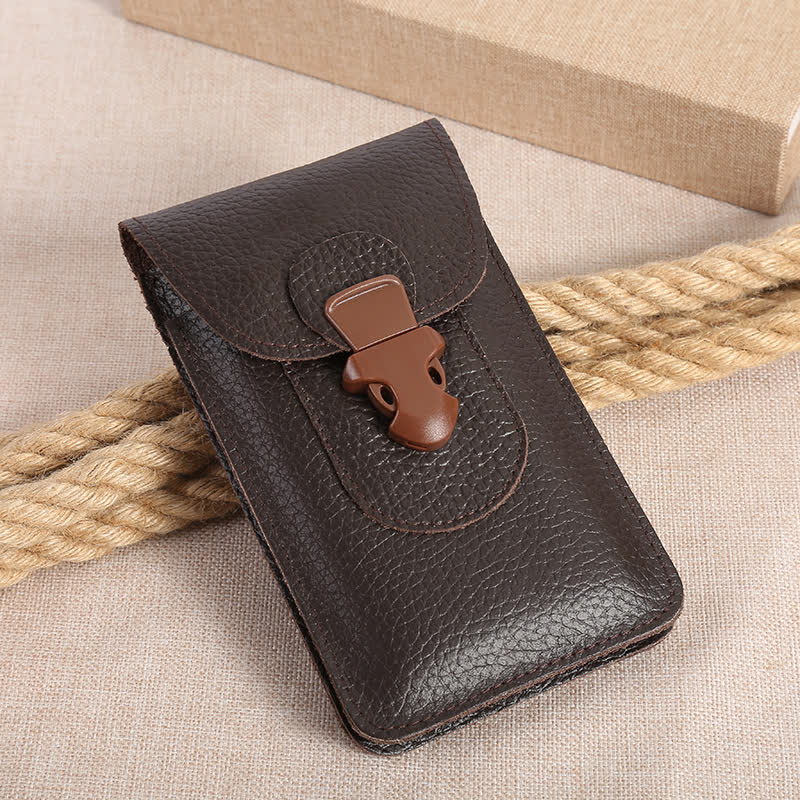 Release Buckle Cellphone Carrying Leather Belt Bag