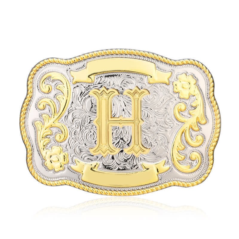 Golden & Silver DIY Western Initial Letter Buckle Leather Belt - H - Without Belt - image 8