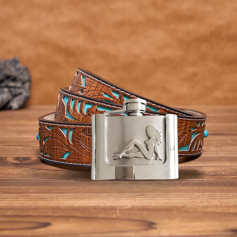 - There is a 2 oz Flask in the belt buckle, which is easy to take out and is especially suitable for going out.
