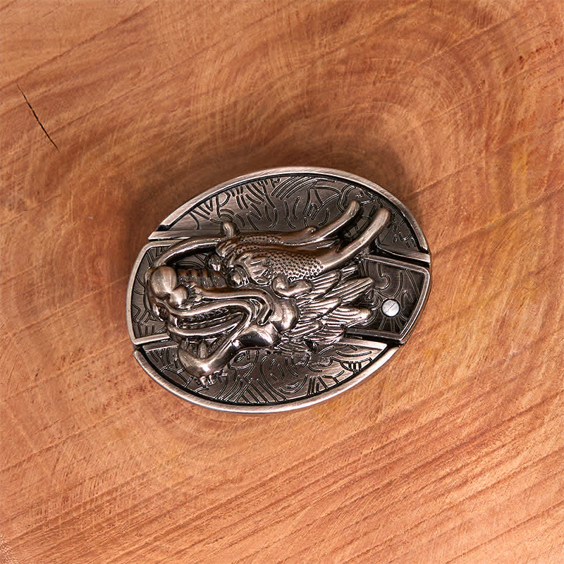 Men's DIY Dragon Head Hidden Folding Knife Leather Belt