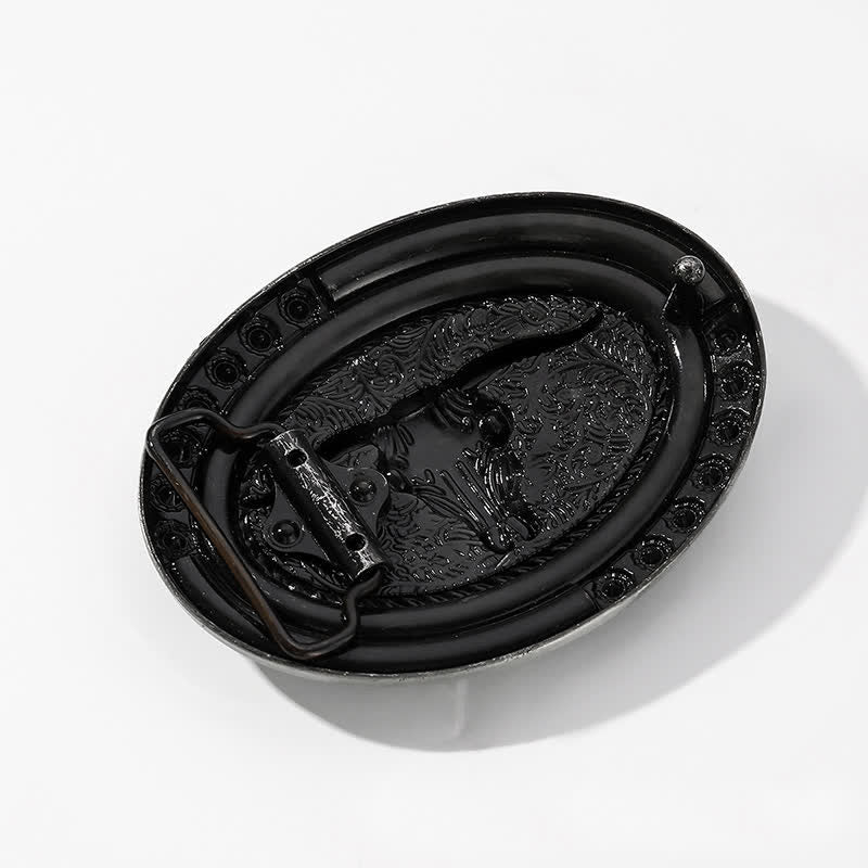 Classic engraved longhorn bull head and flower pattern, shinning rhinestones and colored stones add a hemian style, it can match any jeans and casual pants.