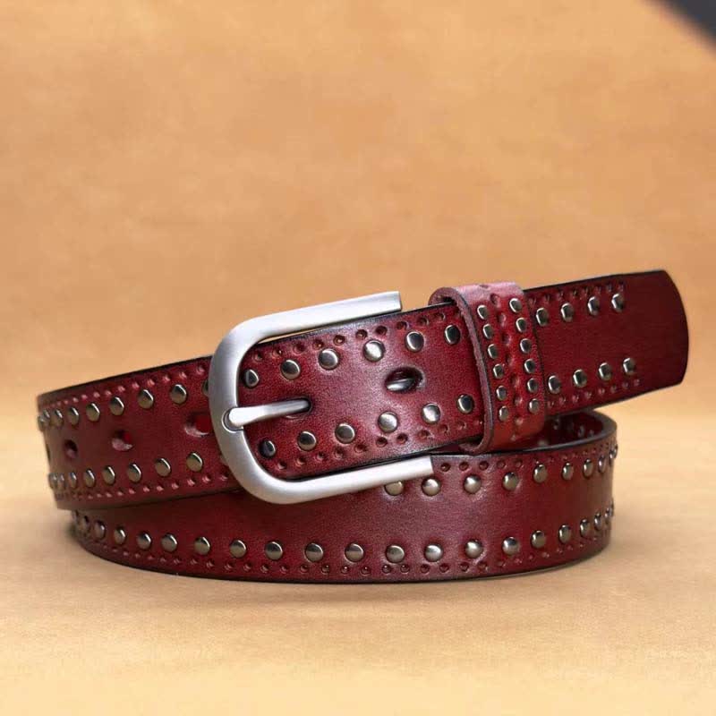 Retro Metal Rivet Studded Casual Jeans Leather Belt