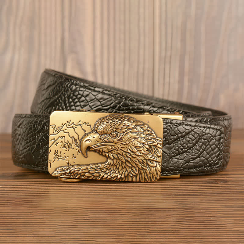Men's Carved Eagle Crocodile Pattern Leather Belt