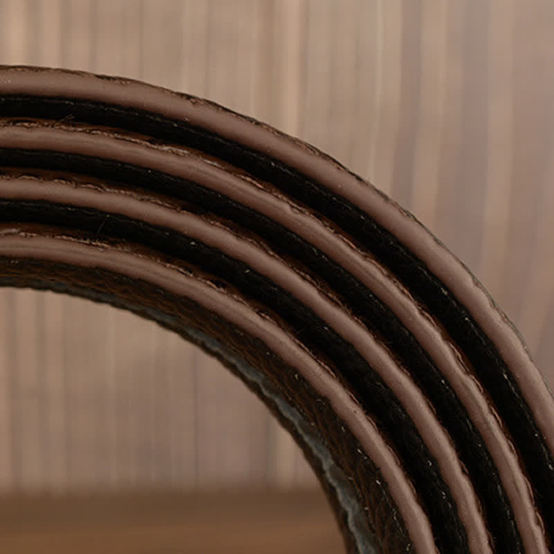 - Just slide the dress belt into the sliding buckle and pull leather belt through, the ratchet buckle auto-locks.