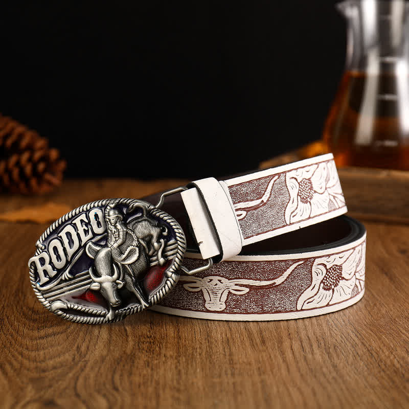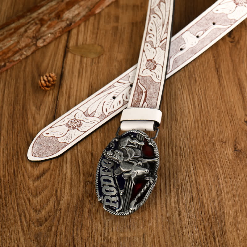 Men's Rodeo Bullfighting White Embossed Leather Belt
