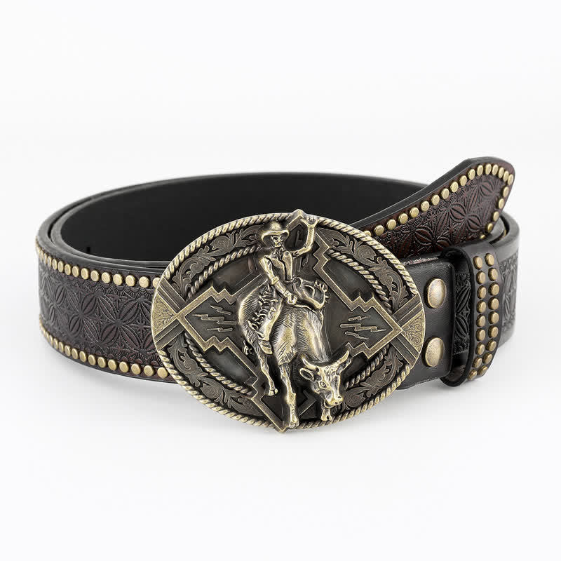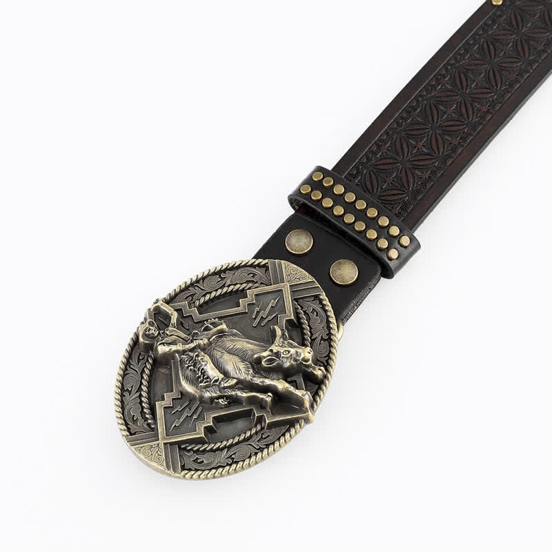 Men's Antique Longhorn Steer Rivet Leather Belt