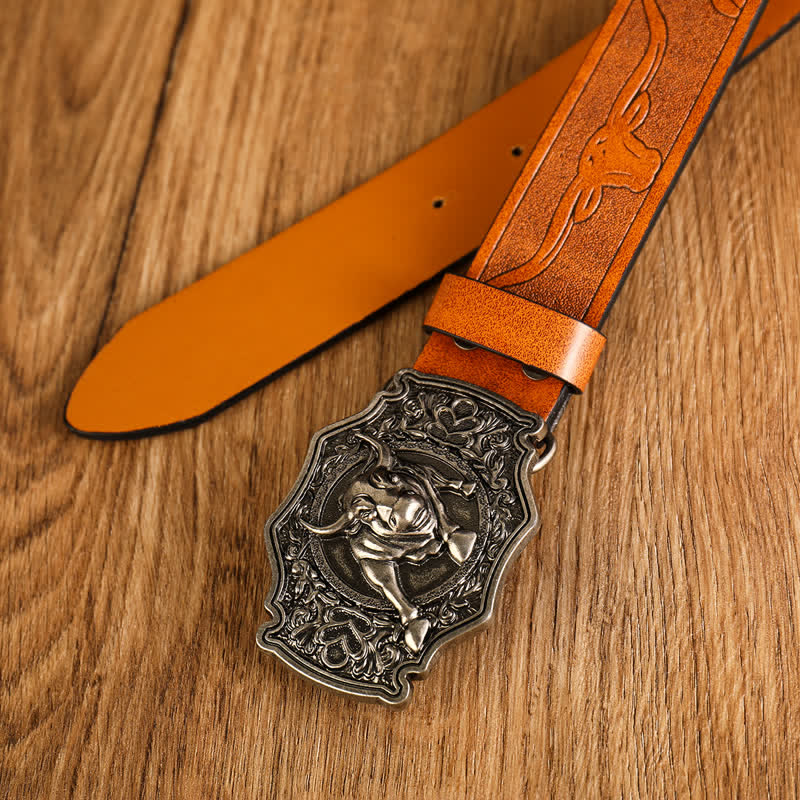 Men's Bull Head Buckle Leather Belt
