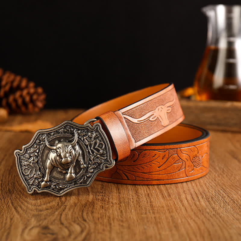 Men's DIY Domineering Longhorn Bull Buckle Leather Belt