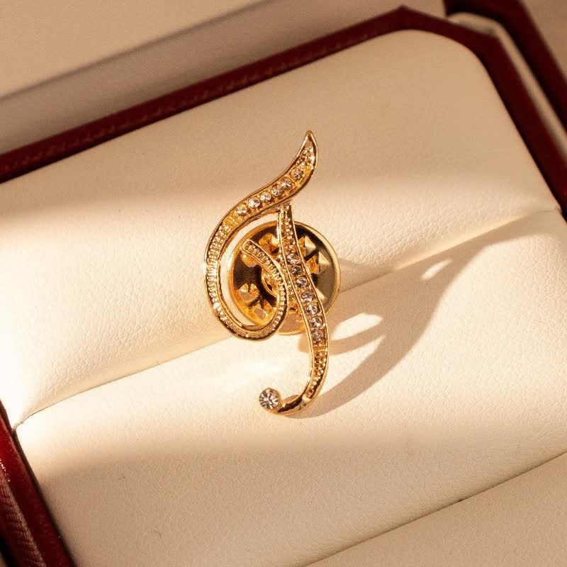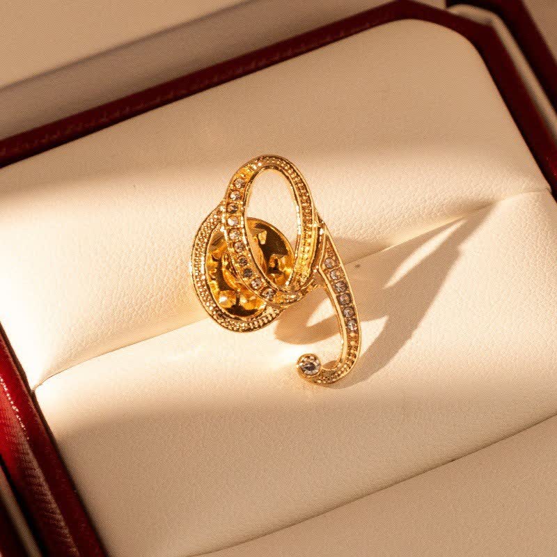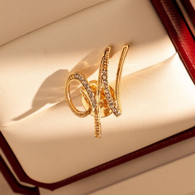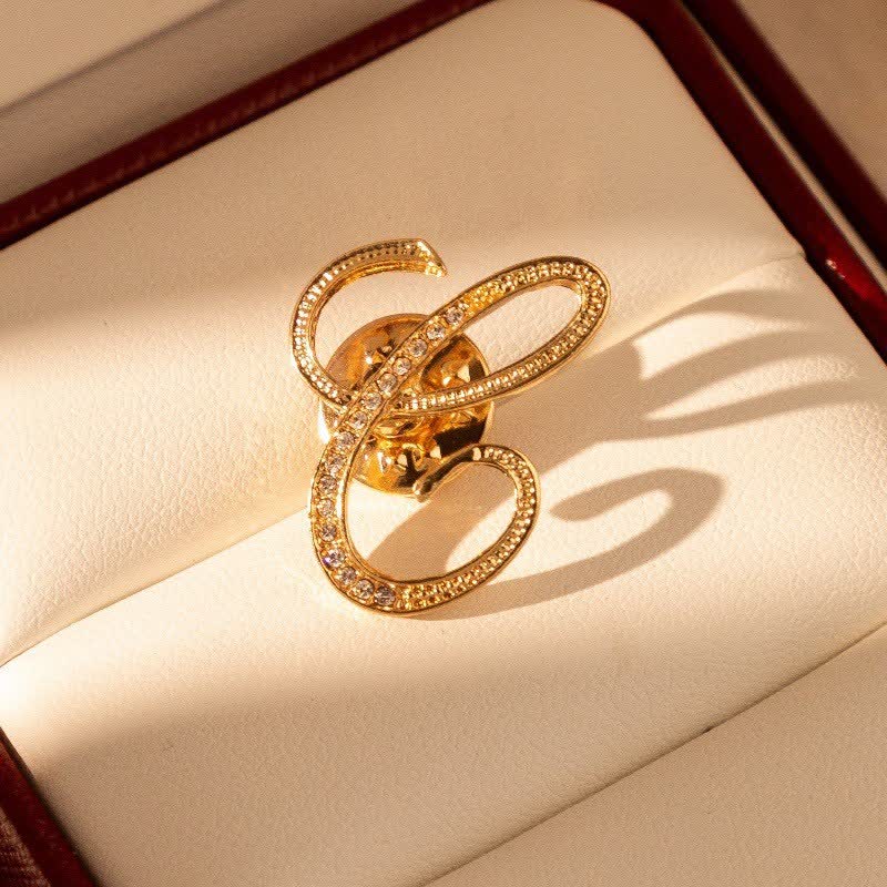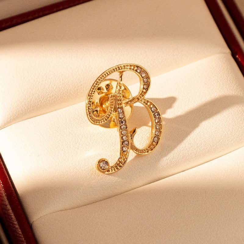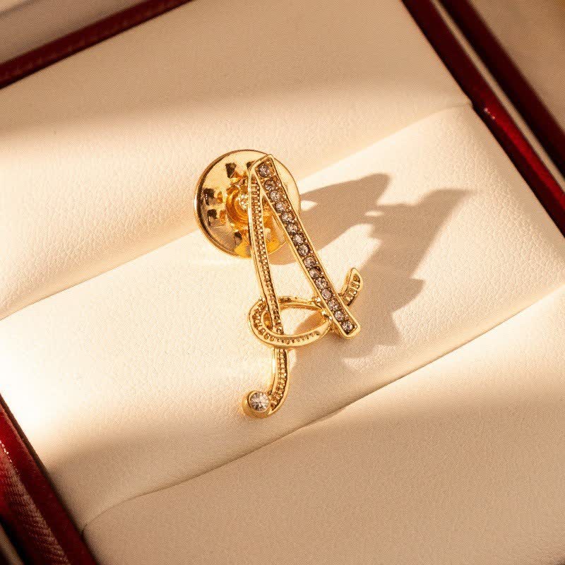 Gold Initial Letter 26 Alphabet Rhinestone Brooch