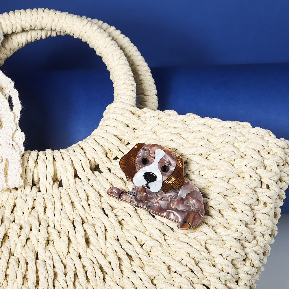 • This cute little dog brooch is made of acrylic material, lightweight and durable.