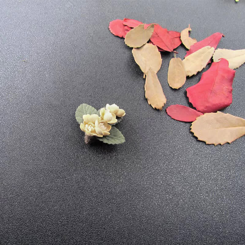 - Skillfully folded and sewn layers of petals create a realistic flower shape.