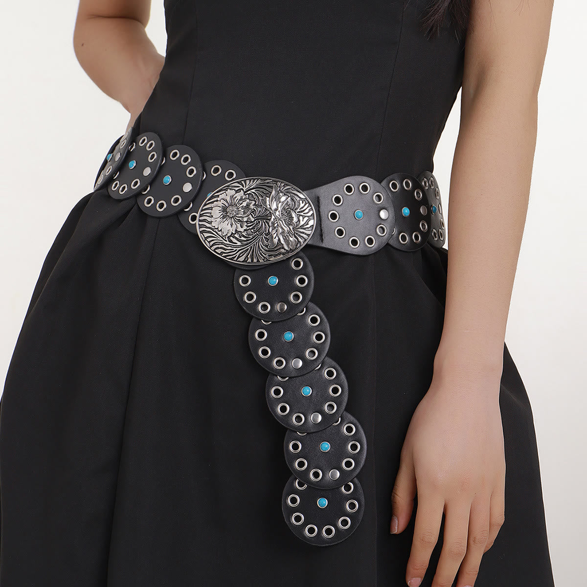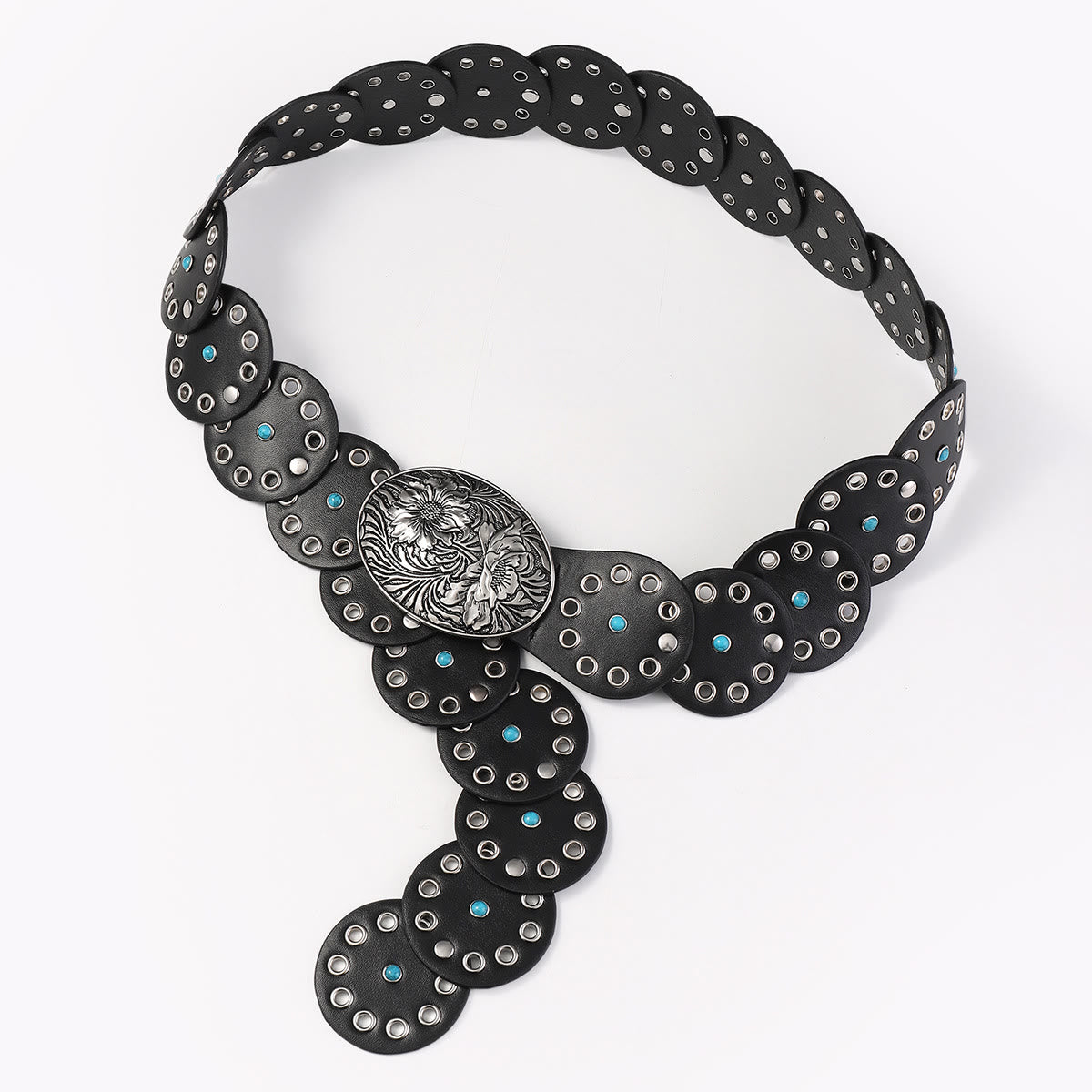 This belt combines elegance and durability, made of high-quality leather with a stunning circular hollow design adorned with exquisite blue diamond inlay, providing comfort and a snug fit suitable for all day wear. Whether dressing up for special occasions or adding style to daily outfits, this belt is an excellent choice.