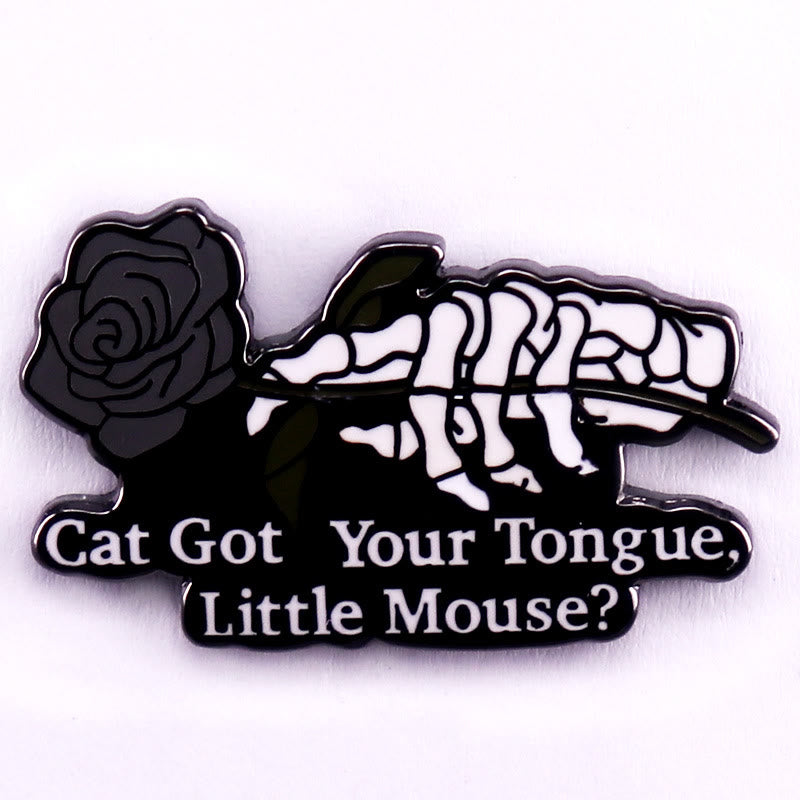Cat Got Your Tongue Little Mouse Rose Skeleton Enamel Pin Brooch