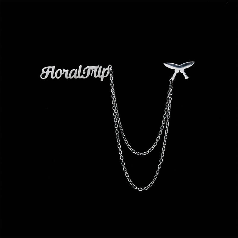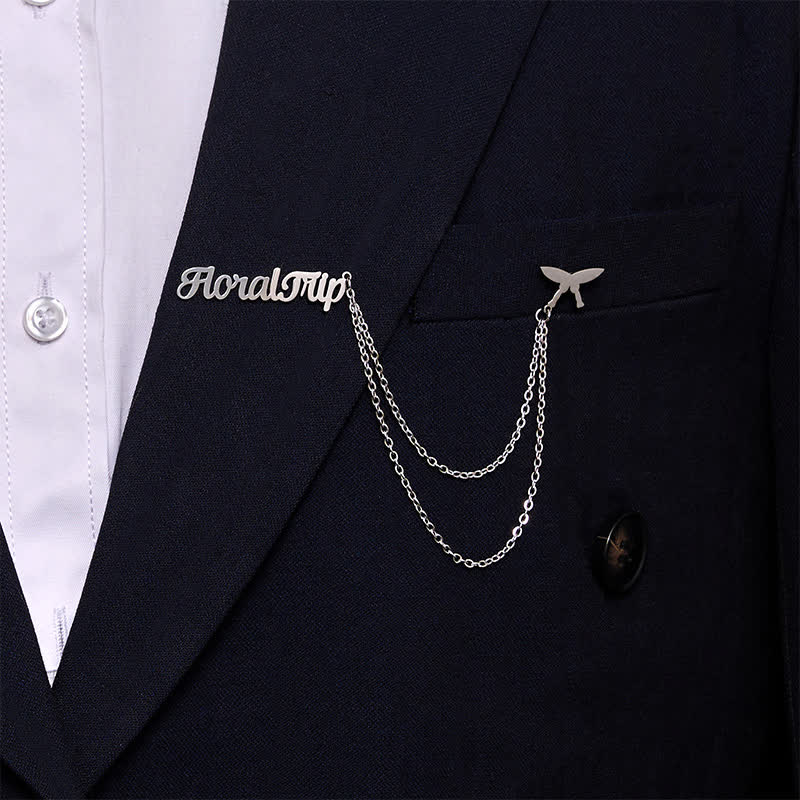 2Pcs Men's LightCyan & Navy Flower Pattern Wide Necktie Corsage Set