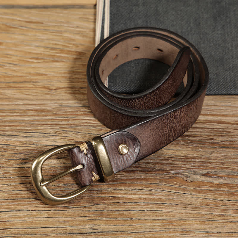 Women's Handmade Narrow Brass Buckle Genuine Leather Belt