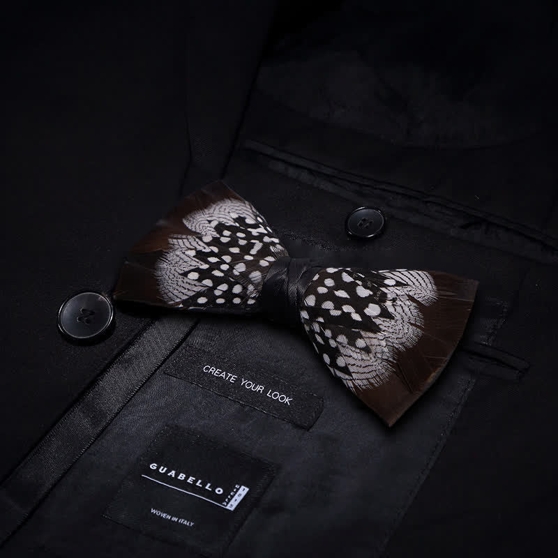 Black & White Pattern Feather Bow Tie with Lapel Pin