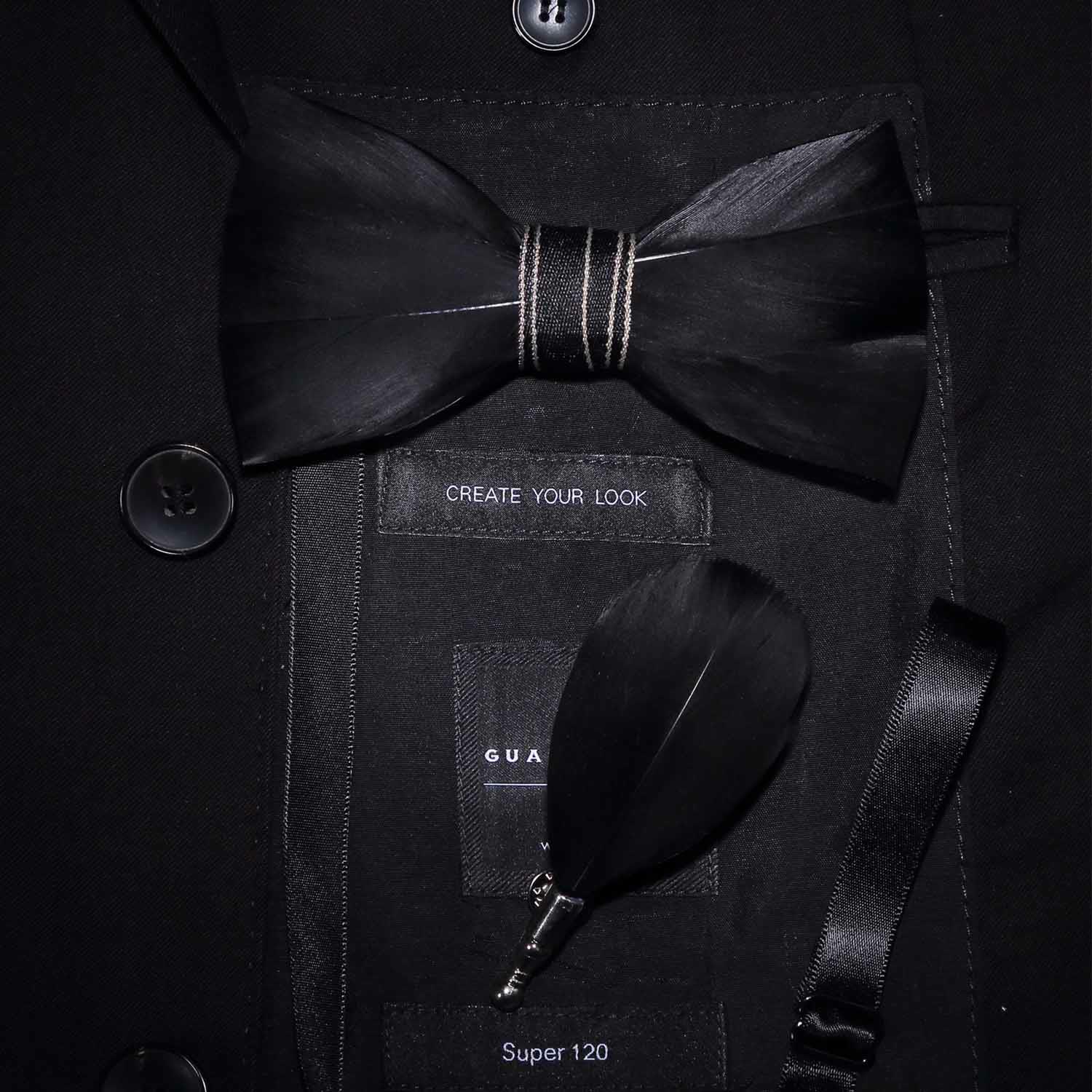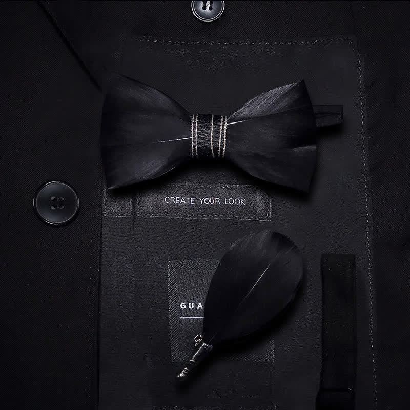 Kid's Black Noble Feather Bow Tie with Lapel Pin