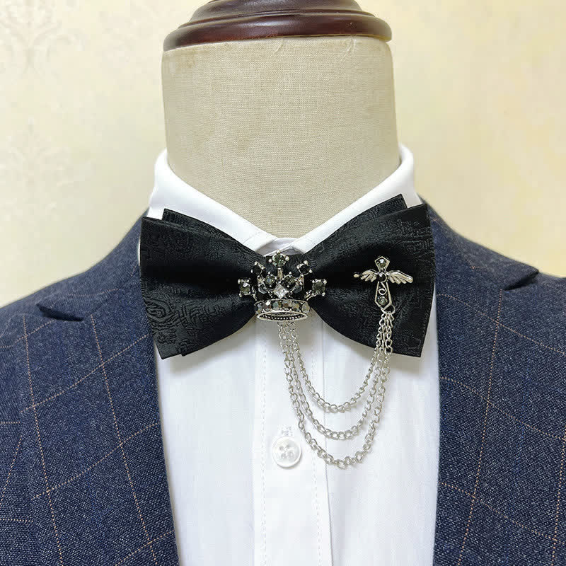 - Sparkling rhinestones were setted on the mearal crown and cross of the bow tie.