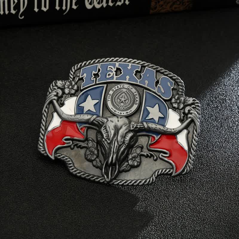 Men's DIY Texas Flag Longhorn Bull Buckle Leather Belt