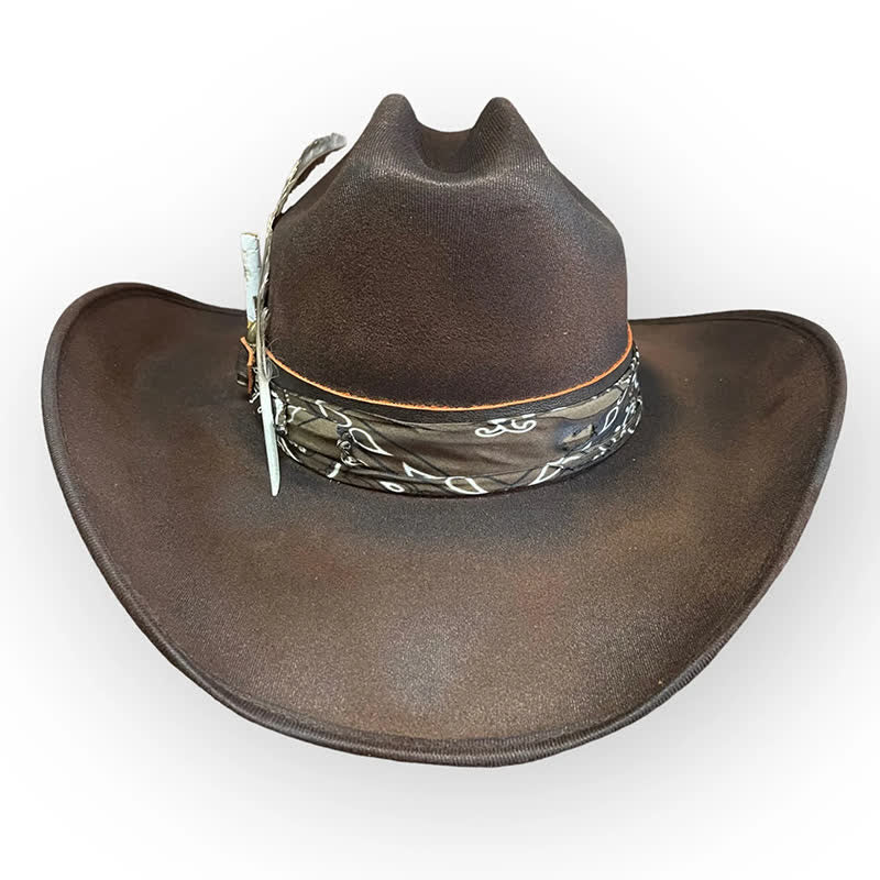 Paisley Leather Strap Feathers Wool Cowboy Hat