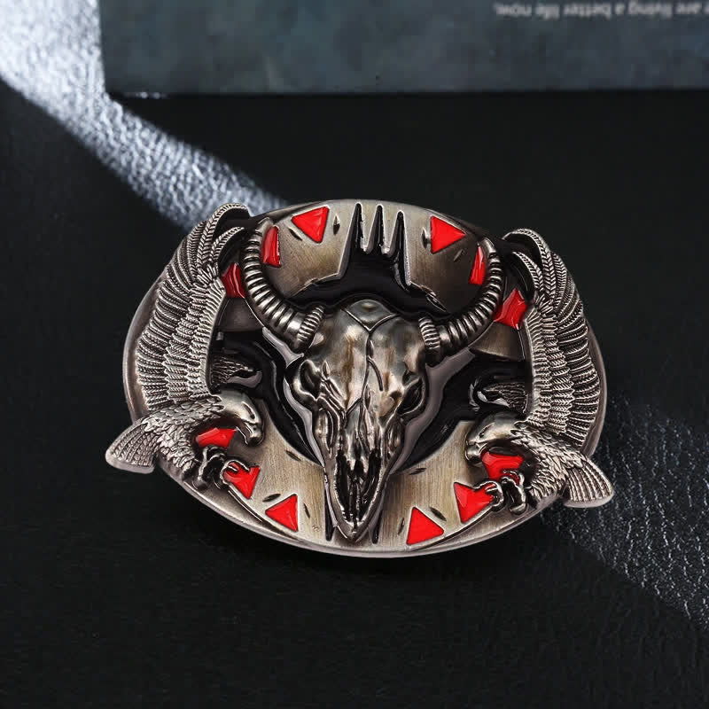 Men's DIY Vintage Bull & Dual Eagles Buckle Leather Belt