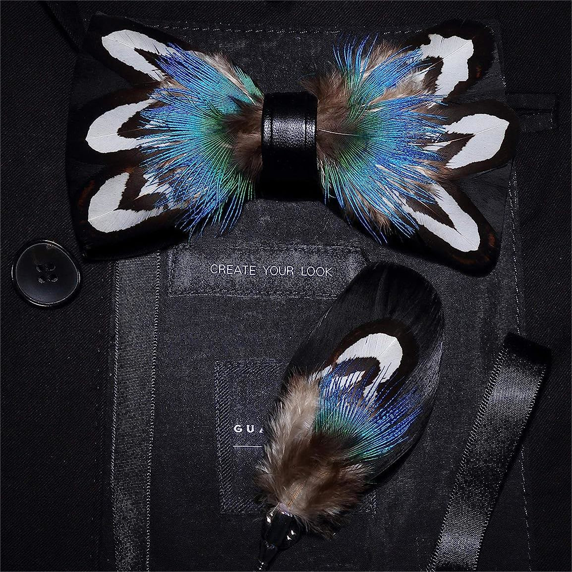 • Features: The peacock feather bow tie is a true work of art, featuring a striking arrangement of iridescent blue and white feathers, accented by subtle hints of black and brown.