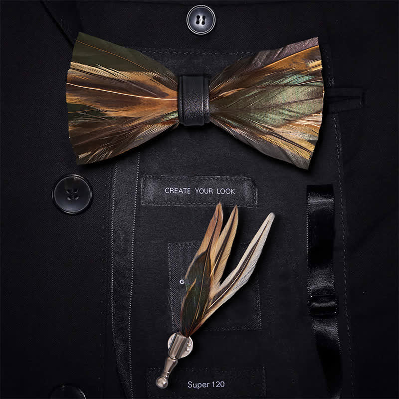 Forest Green Pheasant Feather Bow Tie with Lapel Pin