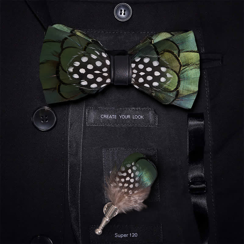 - Features: The green tone feather with black edges is a muted. A little bit chic, a little bit classic, it spotlight subtle bluish green pheasant feathers with trademark guinea feather.