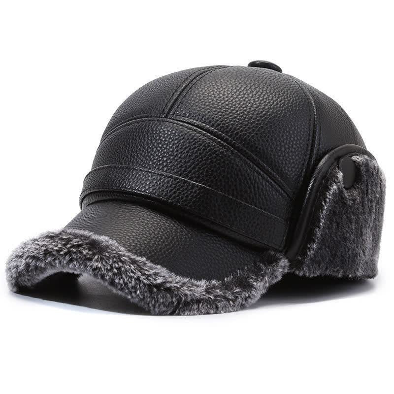 PU Leather Fleece Earflaps Baseball Hat