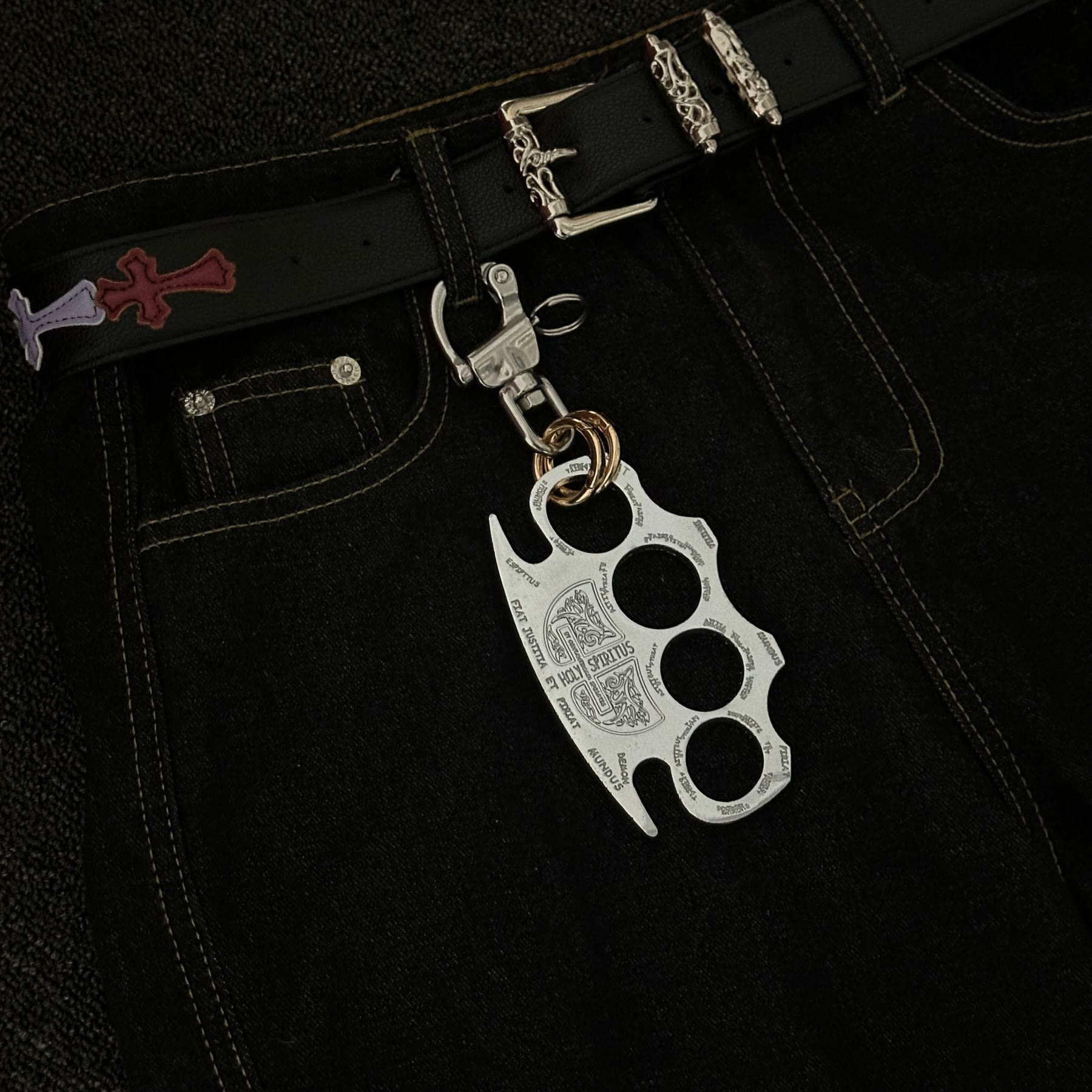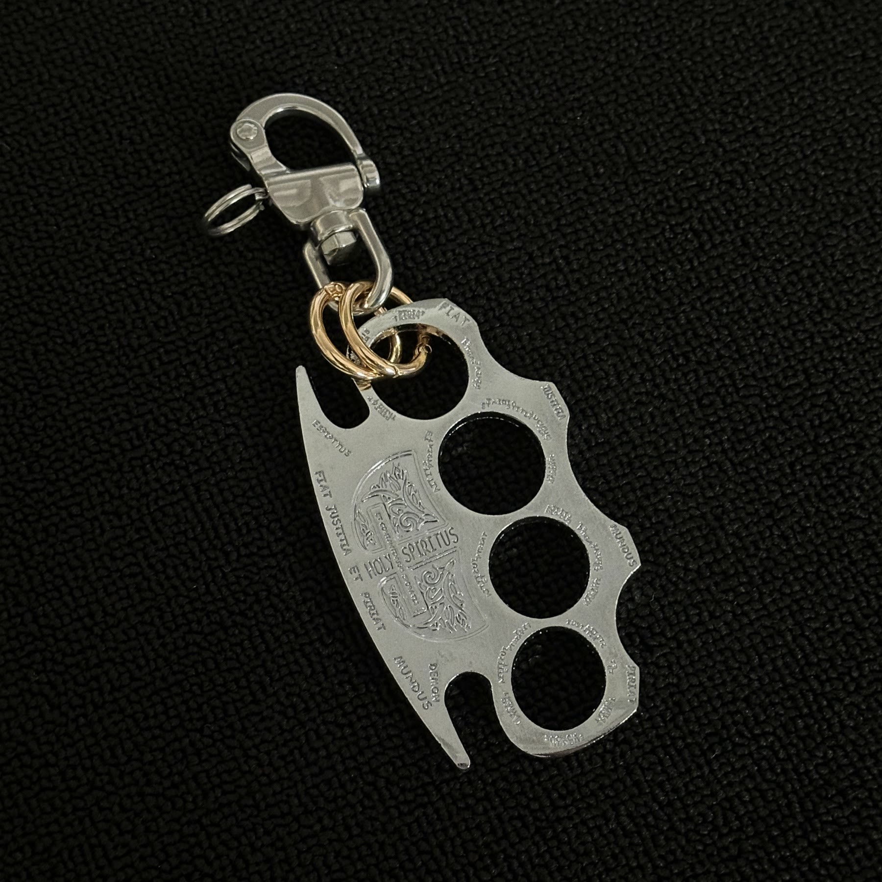 This keychain is made of sturdy alloy with a polished silver surface. Its knuckle duster shaped design ensures that it has a certain degree of self-defense ability, making it suitable as a daily decoration accessory and also for protecting oneself in specific occasions.