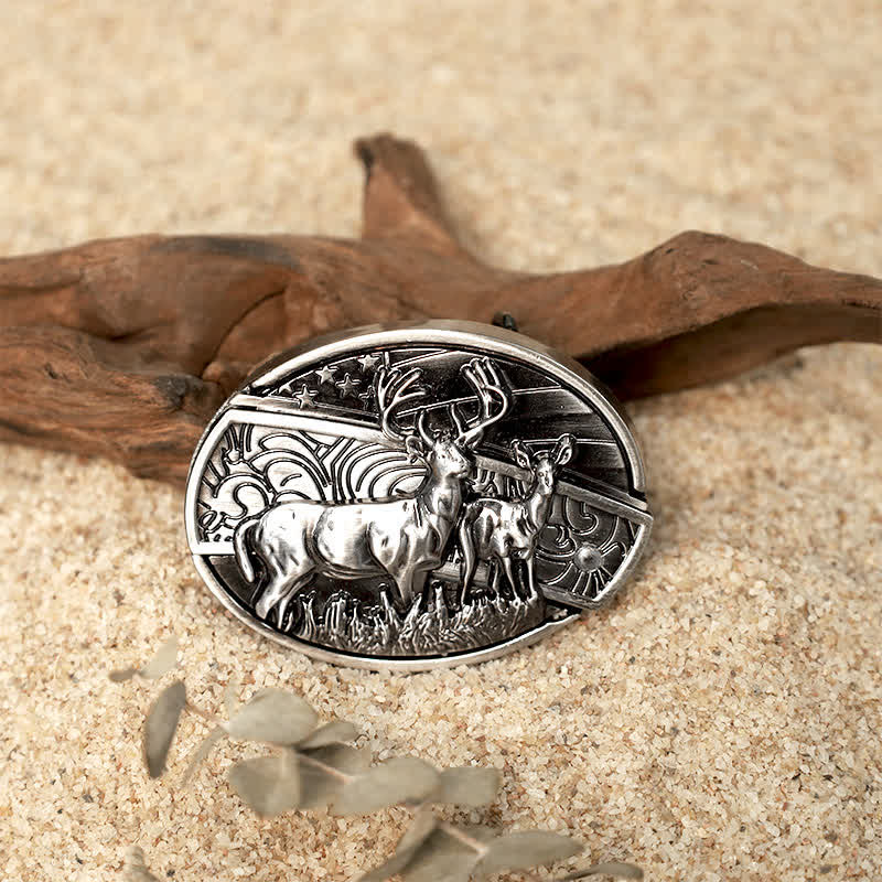 Flower Deer DIY Hidden Folding Knife Leather Belt Buckles Bundle Set