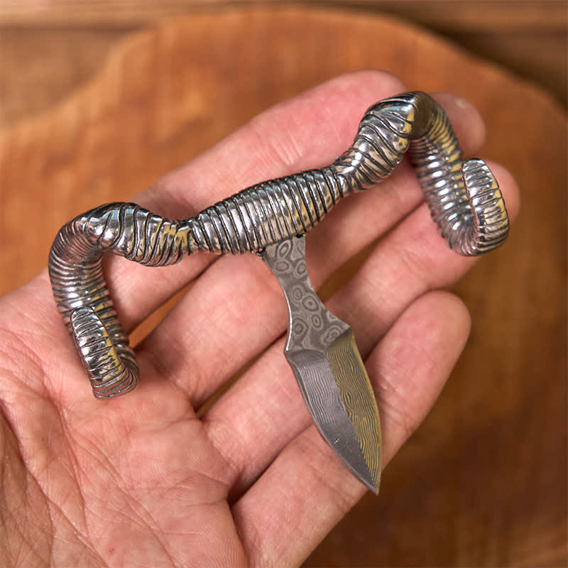 Beyond practical use, the unique cowhead design makes a fun and conversation-starting pendant to wear as a necklace or tea bag charm adding personality. A fixed push dagger knife was inserted in the sheath.