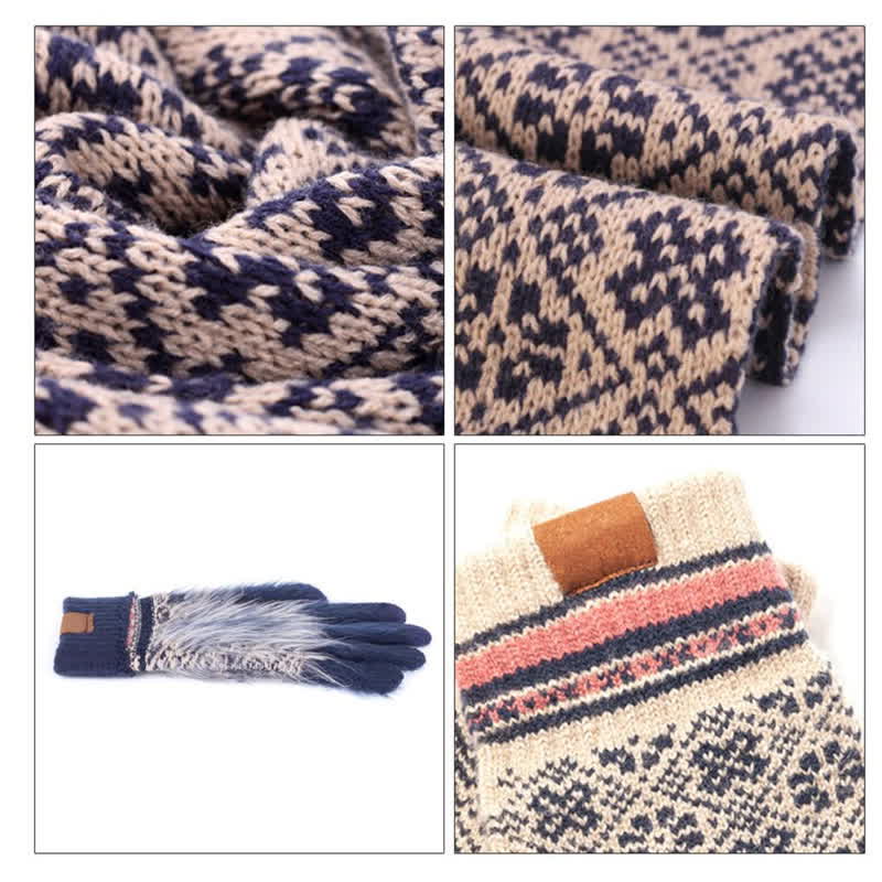 Fashion 3 pieces design included warm hat + soft gloves + long scarf set, there is a layer of plush within in addition to the knitted exterior layer, perfect for cold winter. Knitted with exquisite snowflake pattern are easy to match various outfits style. The three common fingertips of gloves are electrically conductive. Make it easy for you to use your phone.