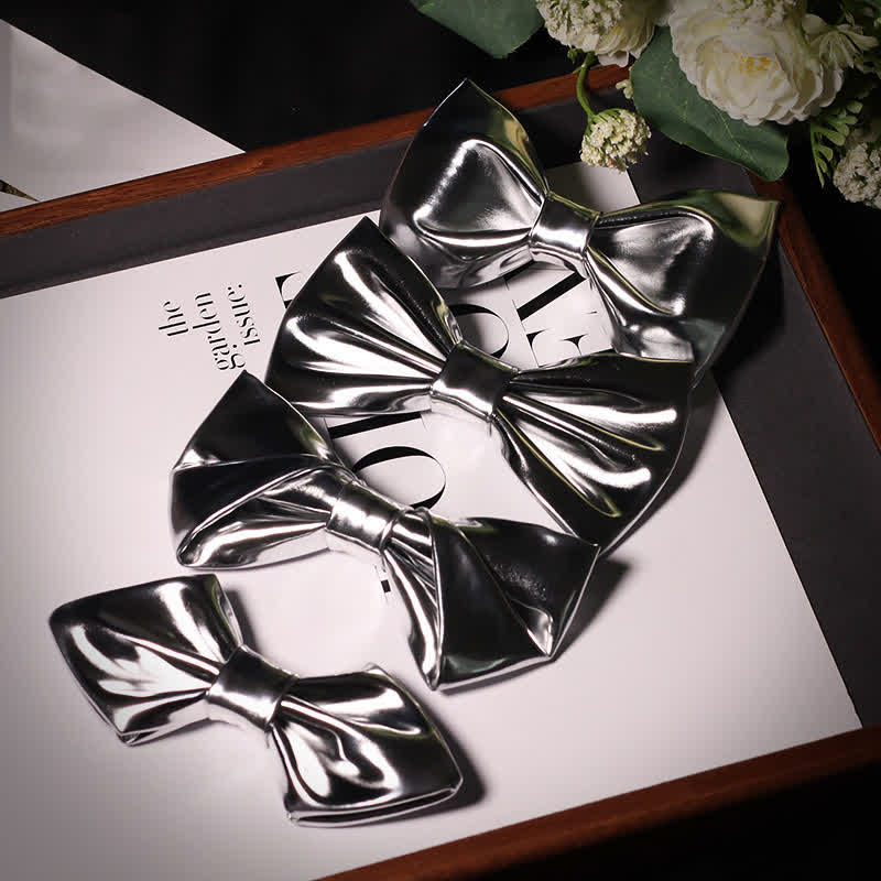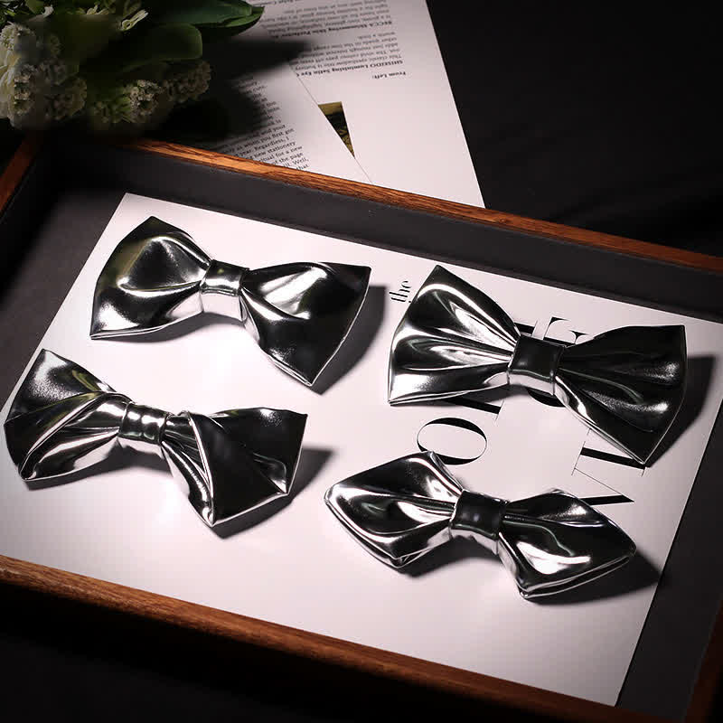 Men's Modern Style Metallic Silver Gray Leather Bow Tie