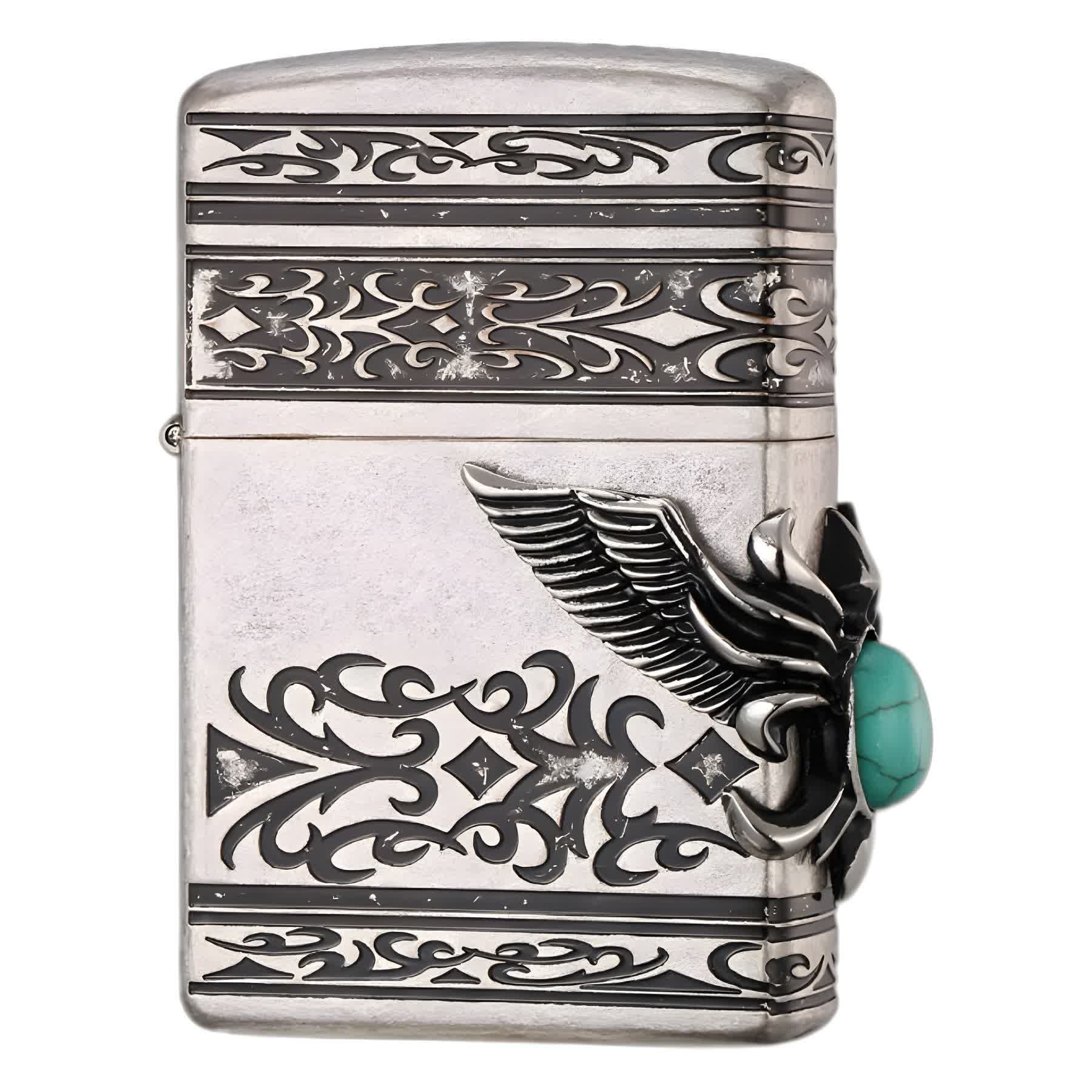 Eagle Wings Turquoise Inlaid Refillable Kerosene Lighter